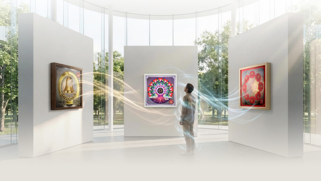我們將古老智慧的易經符號、五行圖騰與九宮飛星轉譯為當代空間美學。此套系統的核心邏輯在於:透過「易卦行動共振」(個人頻率校準)與「飛星安居共振」(空間座標校準),為現代人建立一套內外一致的穩心導航。